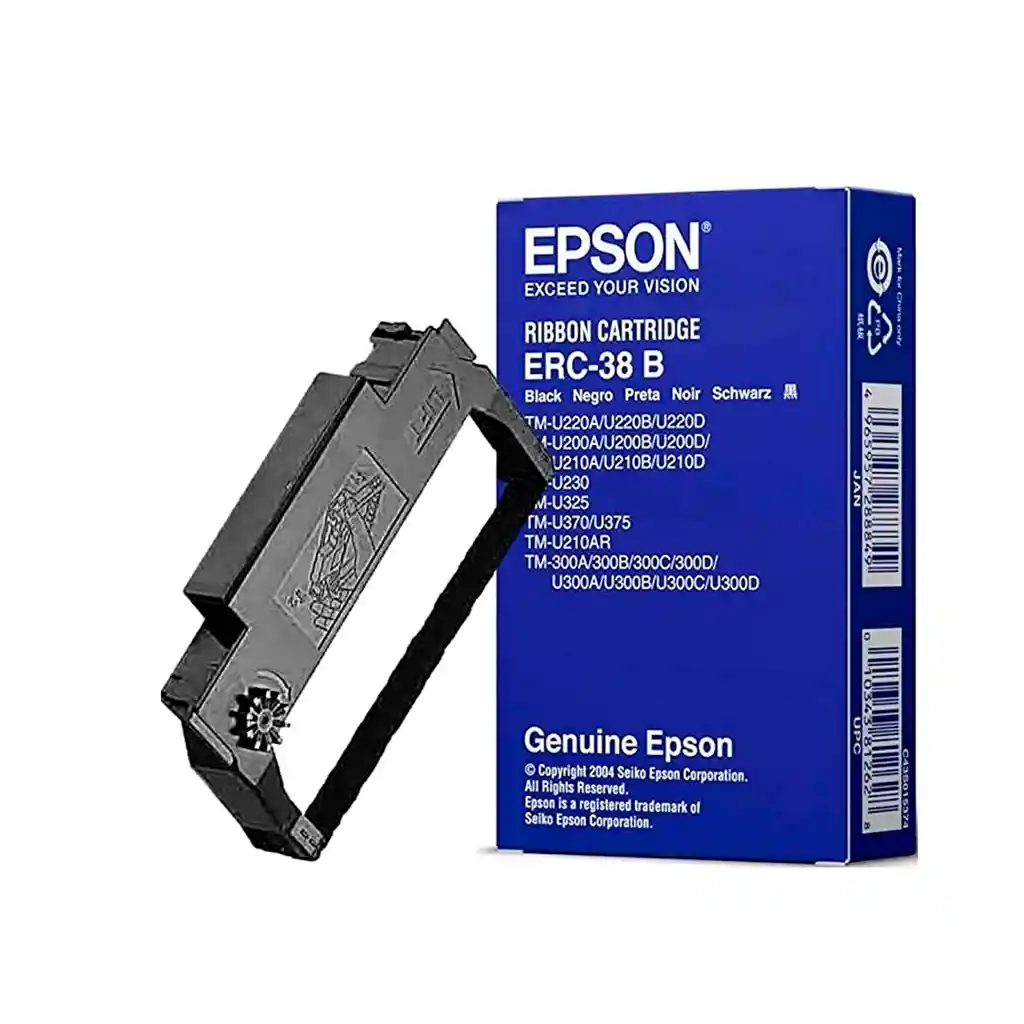 Cinta de tinta para impresoras de tickets Epson.La EPSON, C43S015374 (ER) Original ofrece la mejor calidad en impresión y un óptimo rendimiento. La calidad de este producto está avalada por EPSON y sus años de experiencia en este mercado.Especificaciones:Descripción del producto Epson ERC 38B - cinta de impresiónTipo de consumible Cinta de impresiónTecnología de impresión Matriz de puntosColor de impresión NegroCantidad incluida 1 Impresoras compatibles:Epson ERC-30Epson ERC-38Epson TM 220Epson TM 300AEpson TM 300BEpson TM 300CEpson TM 300DEpson TM U200DEpson TM U210Epson TM U210DEpson TM U300AEpson TM U300BEpson TM U300CEpson TM U300DEpson TM-U200Epson TM-U220Epson TM-U230Epson TM-U300Epson TM-U325Epson TM-U370Epson TM-U375