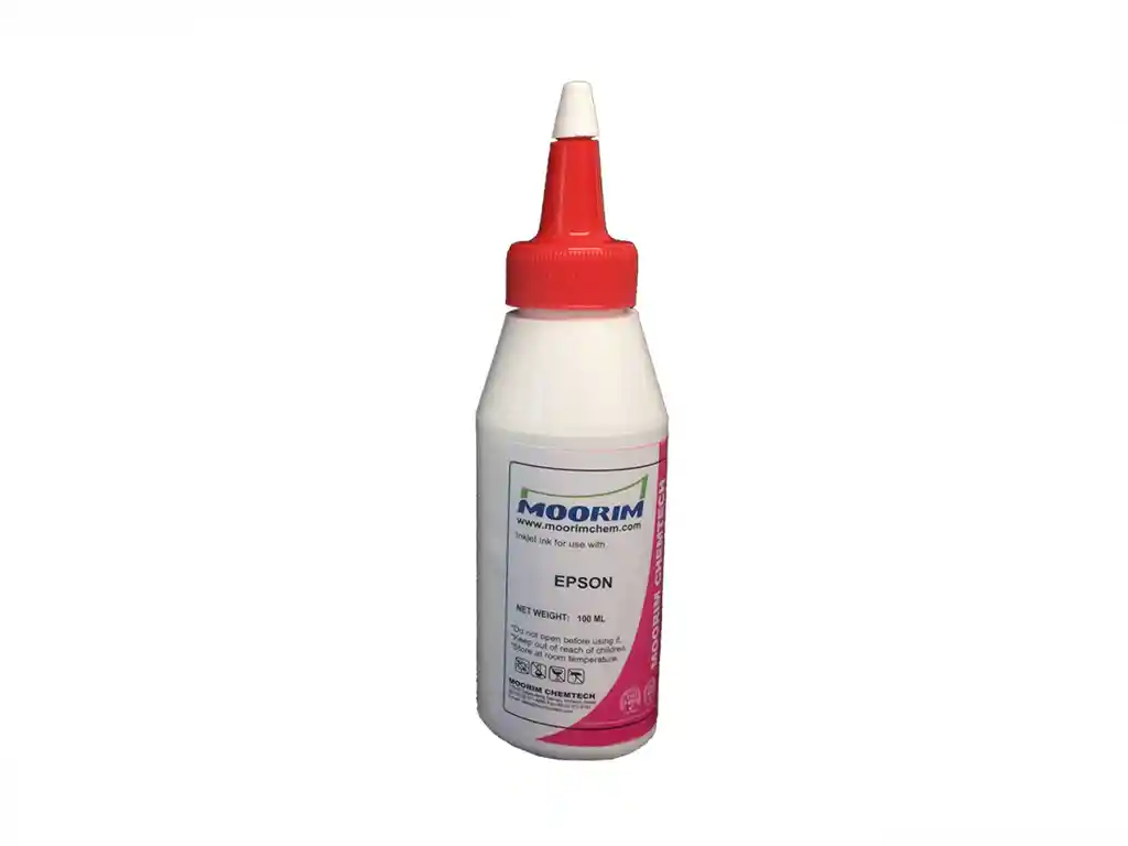 Tinta compatible Epson. Presentacion de 100ml. Compatible con toda la serie L y otros modelos con sistema continuo. ideal para impresiones cotidianas a full color, fotografía no profesional. tinta de excelente calidad, certificada (ISO14001- ISO9001). Marca Moorim, hecha en Corea. Perfecta para recargar cartuchos de tinta