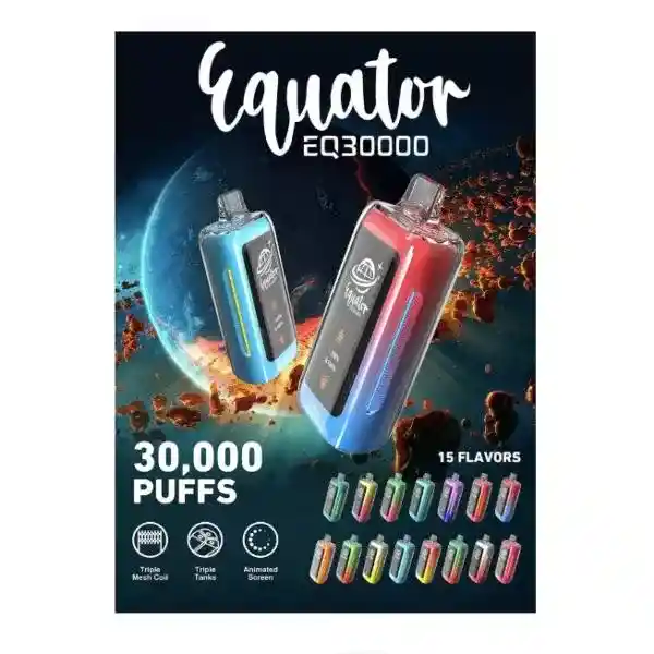 El Equator EQ30000 es un dispositivo desechable de alta capacidad diseñado para los entusiastas del vapeo. Cuenta con unas impresionantes 30,000 bocanadas y una concentración de sal de nicotina del 5% para una experiencia de vapeo satisfactoria.