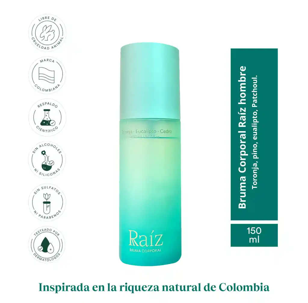 Corporal Fresca Para Hombre Enriquecida Con Toronja Pino y Eucalipto. Esta Fragancia Masculina Evoca el Frío Que se Levanta Del Bosque de Niebla y Envuelve Los Árboles en un Manto Fresco. Sus Notas de Patchouli y Maderas Blancas Nos Recuerdan Las Raíces Que Abrazan y Nos Conectan Con la Tierra.