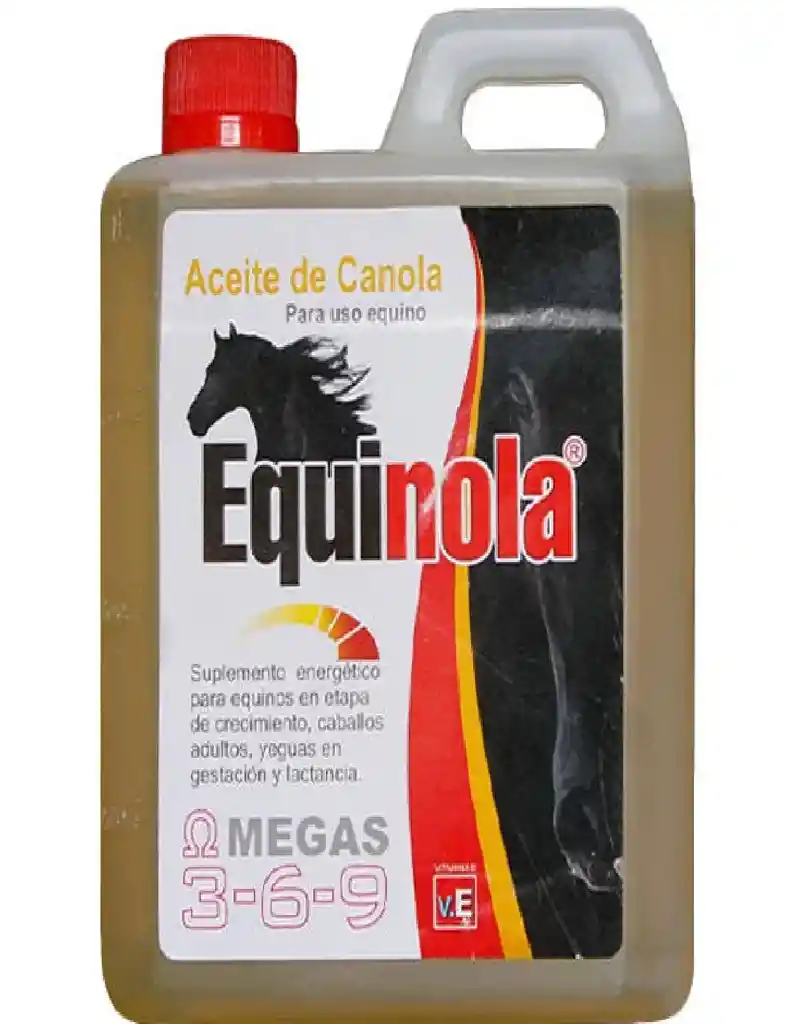 Equinola es aceite de Canola para equinos que proporciona una fuente balanceada de ácidos grasos esenciales Omega 3 y 6.