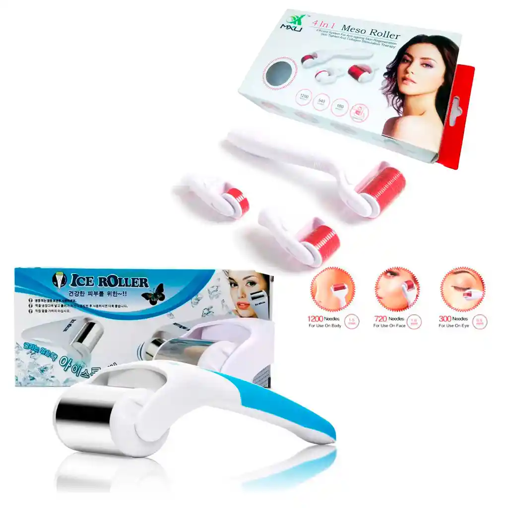 El Combo Meso Derma Roller 4 en 1 y Rodillo Facial Frio permite rejuvenecer y tonificar la apariencia de tu rostro. el Meso Roller 4 en 1 funciona como un Sistema de rodillos de agujas en titanio micro de excelente calidad, que lo convierte en una herramienta anti envejecimiento eficaz que reduce los signos comunes de envejecimiento, como arrugas, hendidura facial, etc. gracias a que Promueve la circulación sanguínea y hace que su piel se contraiga, se vuelva más elástica y efectivamente mejorar la cicatriz, las estrías, el acné, entre otros. También se puede aplicar sobre el cuello. el Meso roller esta Hecho de material seguro, amistoso e inofensivo porque no hay efectos secundarios en el cuerpo humano. Es ideal para favorecer la penetración de sueros, aceites y cremas faciales. El perfecto efecto revitalizante que disminuye ojeras al instante y si lo usas antes del maquillaje es ideal para cerrar los poros. El perfecto efecto revitalizante que disminuye ojeras al instante y si lo usas antes del maquillaje es ideal para cerrar los poros ESPECIFICACIONES: Combo MESO ROLLER y RODILLO FRIO Sistema de rodillos de agujas en titanio Regenerador de Colágeno y elastina, Promueva la circulación sanguínea y favorece los procesos de cicatrización y Renueva la piel, disminuye el tamaño de los poros DermaRoller 0.50mm DermaRoller 1.00mm: DermaRoller 1.50mm