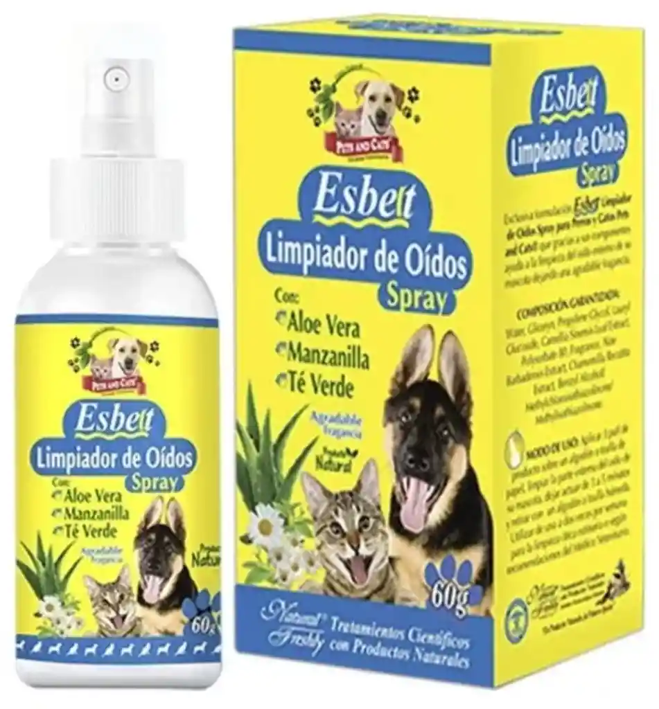 Limpiador de oidos para perros y gatos que ayuda a la limpieza del oido externo de su mascota, dejando un agradable fragancia