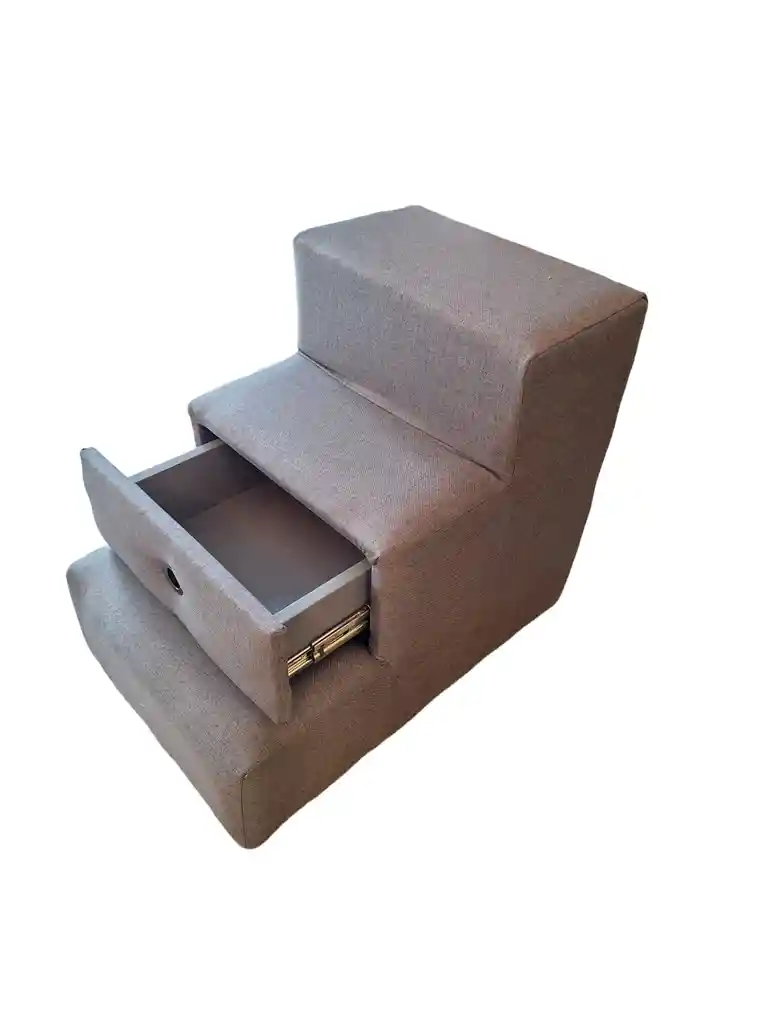 Esta escalera para mascotas no solo proporciona un acceso fácil y seguro a la cama, sino que también ofrece un espacio conveniente para guardar sus juguetes u otros accesorios. Fabricada con materiales de alta calidad y un diseño funcional, esta escalera es una adición perfecta para tu hogar. Materiales: La estructura de la escalera está hecha de madera MDF resistente, mientras que cada escalón está acolchado con espuma de alta densidad y cubierto con tela antirasguños para mayor comodidad y durabilidad. El cajón adicional está construido con los mismos materiales de alta calidad y cuenta con un tirador elegante para facilitar su apertura. Dimensiones: Con una altura de 50cm, un ancho de 40cm y un fondo de 60cm, esta escalera es lo suficientemente amplia y estable para adaptarse a una variedad de tamaños de mascotas y alturas de cama. El cajón tiene dimensiones internas de aproximadamente 9cm de alto, 28cm de ancho y 32cm de largo proporcionando un espacio generoso para guardar juguetes, mantas u otros artículos para mascotas. Características: Diseño compacto que ahorra espacio y proporciona una solución multifuncional para las necesidades de tu mascota. Los escalones antideslizantes ofrecen estabilidad y seguridad mientras tu mascota sube y baja. El cajón con tirador permite un acceso fácil y rápido al almacenamiento, manteniendo los artículos de tu mascota organizados y al alcance de la mano. La tela antirasguños es resistente y fácil de limpiar, lo que garantiza una escalera y un cajón que se verán bien durante mucho tiempo. Con esta escalera para mascotas con cajón, no solo tu mascota disfrutará de un acceso cómodo a la cama, sino que también tendrás un lugar conveniente para guardar sus pertenencias.