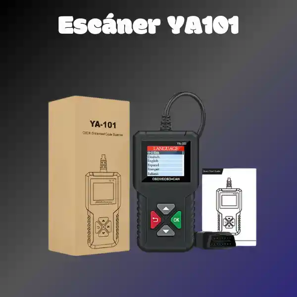 RASGOS PRINCIPALES DEL YA101: 1. Tiempo de vida de actualización gratuito: Simplemente coloque el USB y pegue los archivos en el disco Flash. 2. Tiene la función de captura de pantalla (CR3001 no tiene esta función). 3. Prueba de batería. 4. Encontrar la causa del código de error. 5. Soporta vehículos de 1996 y más nuevos (OBDII & CAN). 6. Idiomas: inglés, francés, ruso, español, alemán, italiano, portugués, japonés, chino. 7. YA101 proporciona funciones completas de diagnóstico OBDII/EOBD y cumple con protocolos como ISO9141-2, ISO14230-4, SAEJ1850 y ISO15765-4. Funciona en vehículos del año 2000 y más tarde OBD 2 compatible con vehículos cuyo protócolo está disponible como la descripción a continuación. si no estás seguro de si nuestro OBD2 es compatible con su coche, enviar un correo electrónico a nosotros, lo comprobaremos por usted. FUNCIONES PRINCIPALES Leer y borrar los códigos de error, monitor de la visualización de I/M estado de preparación, vistas de datos, lectura en vivo flujo de datos, prueba de batería y así sucesivamente. FÁCIL DE OPERAR Sin necesidad de batería, simplemente enchufe en la interfaz OBD para empezar a diagnósticar su vehículo. Incluso un principiante puede utilizar nuestro OBD2 para diagnosticar su coche, comprobar el menú para seleccionar la función de diagnóstico. DISEÑO CLÁSICO Gran visualización LCD, botones de desplazamiento del menú arriba y abajo, el botón de entrada y salida permiten menú de navegación para salir y entrar. IDIOMAS Nuestro OBD2 admite Inglés, Alemán, Francés, Español e italiano. FUNCIONES DEL YA-101 1. FUNCIONES DE DIAGNÓSTICO: Utiliza esta función para seleccionar un vehículo y luego continuar al menú de diagnóstico. 2. LECTURA DE CÓDIGOS: Lee los DTC del ordenador de los vehículos con Koeo o KOE. 3. BORRADO DE CÓDIGOS: Elimina los DTC de la memoria del vehículo. 4. DATOS EN LÍNEA: El menú de datos en vivo le permite ver, grabar y reproducir datos PIDs en tiempo real. En el menú de datos en vivo, puedes insertar el artículo seleccionado al frente manteniendo pulsada la tecla "ok" durante 3 segundos. 5. MARCO DE CONGELACIÓN: Muestra una instantánea de las condiciones de funcionamiento en el momento de un fallo. 6. INFORMACIÓN DEL VEHÍCULO: La herramienta de escaneo muestra el número de VIN del vehículo, los ID (s) de calibración y los CC que identifican la versión del software en el módulo (s) de control de vehículos la herramienta también muestra el seguimiento del rendimiento en uso de los monitores de preparación importante. 7. PRUEBA DE COMPONENTES: La herramienta mostrará una lista de componentes y su ubicación en el vehículo. Esta función siempre aparecerá en el menú principal. Esta selección aparecerá en el menú de diagnóstico solo cuando el inodoro tenga una lista de ubicaciones de componentes para el vehículo seleccionado actualmente. 8. MONITOREO A BORDO: La herramienta de escaneo controla el funcionamiento de los componentes, pruebas o sistemas del vehículo. 9. PRUEBA DE SENSOR: Muestra los resultados de la prueba de monitoreo del sensor de oxígeno de la memoria del vehículo, la prueba del Monitor O2 NO es una prueba a pedido. 10. PREPARACIÓN I/M: Muestra una instantánea del estado de los monitores OBDII del vehículo. Nota: - Para revisar el estado de preparación I/M, asegúrese de que la tecla de encendido esté conmutada. - Para encender con el motor apagado. - No todos los monitores son compatibles con todos los vehículos. Hay dos tipos de pruebas de preparación l/M. - Desde que se borra el DTC-muestra el estado de los monitores desde que el DTCs werelast se borra. - Este ciclo de accionamiento-muestra el estado de los monitores desde el inicio del ciclo de accionamiento actual. Mira las definiciones de DTC almacenados en la herramienta de escaneo y muestra las posibilidades de DTC. (No todos los DTC con posibles motivos) PRUEBA DE VOLTAJE Esta función se utiliza para controlar el voltaje presente en el pin 16 del Conector de Enlace OBDIIData. OPCIÓN La opción de herramienta de cambios muestra información de la herramienta y realiza autopruebas de herramienta. IDIOMAS Permite al usuario cambiar el idioma utilizado por la herramienta. El inglés está por defecto. UNIDAD Cambia las unidades de medida de visualización métrica o imperial. REGISTRO DE DATOS Enciende/apaga la función de registro de datos para grabar los datos del dispositivo a través del vehículo. - Autocomprobación. - Prueba de visualización. - Se utiliza para comprobar la pantalla de visualización. YA101 admite Lista de coches: Nota: YA101 solo admite coches de 12V, no admite coches o camiones de 24V. VEHÍCULOS AMERICANOS Necesita protocolos OBD2 estándar desde 2000 hasta ahora: - Chrysler - Ford - Chevrolet - GM - Jeep VEHÍCULOS EUROPEOS Necesita protocolos OBD2 estándar desde 2003 hasta ahora: - Alfa romeo - SAAB - Acura - Opel - Audi - Seat - Peugeot - Renault - Bentley - Skoda - Daewoo - Benz - Daihatsu - Land Rover - BMW - Vauxhall - Citroen - Volvo - Fiat - VW - Ford - Jaguar VEHÍCULO JAPONÉS Y COREANO Necesita protocolos OBD2 estándar desde 2006 hasta ahora: - KIA - Isuzu - Honda - Mitsubishi - Hyundai - Dacia - Lexus - Mazda - Nissan - Subaru - Suzuki - Toyota VEHÍCULO CHINO Necesita protocolos OBD2 estándar desde 2009 hasta ahora. MODO DE USO 1. Elija un lugar debajo del tablero del lado del conductor debajo del volante y úselo. 2. Si no está seguro de la ubicación del DLC, consulte el manual del vehículo o el centro de servicio de renombre sobre la ubicación. CONEXIÓN DE LA HERRAMIENTA 1. Si el conector no está, debe haber una etiqueta que indique la ubicación del conector. 2. Si es necesario, retire la cubierta del DLC. 3. Gire el interruptor de encendido a la posición ON. NO ARRANQUE EL MOTOR. 4. Conecte el conector OBD al conector de enlace de datos. 5. La herramienta intentará identificar el vehículo. Si tiene éxito, id