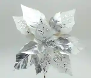 POINSETTIA BRILLANTE CON ESCARCHA 36CM PLATEADO