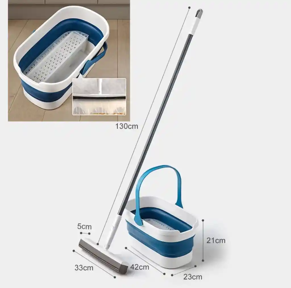 Cubo De Agua Plegable Multiusos Trapero Escoba Escurridor Herramienta de lavado de cubo plegable larga, fregona plana sin apretar lavabo multiusos de silicona DESCRIPCIÓN Reutilizable y fácil de transportar. El cubo de agua es muy pequeño después de ser plegado y ocupa muy poco espacio. Incluso los cajones se pueden almacenar fácilmente. Cuando salgas, se puede colocar en el maletero de tu coche sin ocupar más espacio, se puede utilizar en tu caravana. Es un buen compañero en espacios pequeños. Más usos como puedes ver, no es solo un cubo de limpieza de fregona. Cubo plegable Eyliden también para camping, cocina, almacenamiento en el hogar, baño, lavandería, jardín, patio, camping o barbacoa. CARACTERÍSTICAS - Material de ABS y Goma - Caneca Plegable - Adecuado para su uso para recipiente de enjuague de trapeador - Adecuado para usar para bañar mascotas como gatos, etc. - Práctico para uso doméstico o de viaje sobre la marcha. - Hay un mango en el cubo. QUE INCLUYE LA COMPRA Cubo De Agua Plegable Multiusos Trapero Escoba Escurridor