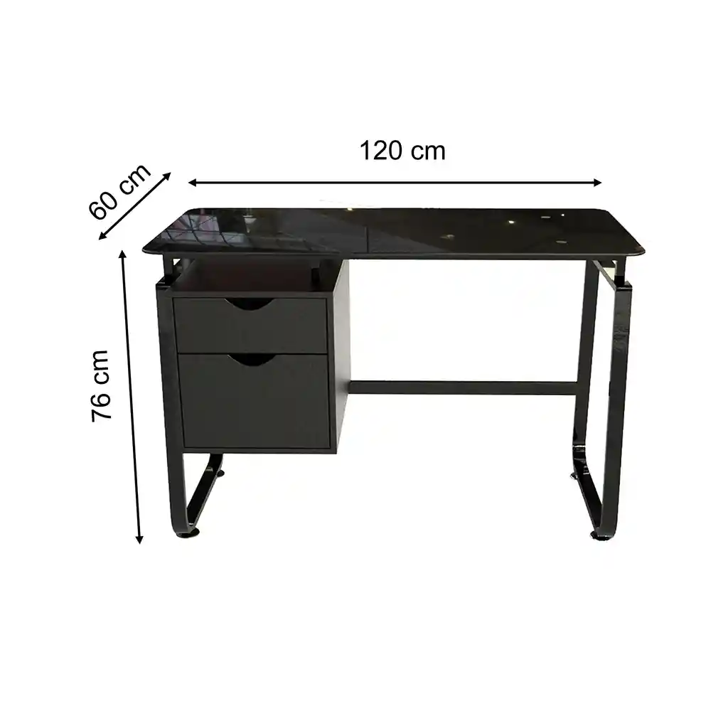 Escritorio secretarial, Estructura metálica con pintura electrostática, Superficie en vidrio Templado de 8 mm, cajonera doble, Ergonómico, Fácil armado, Diseño que garantiza estabilidad y durabilidad, Ideal para oficina y hogar .MEDIDAS: ALTO 76 / ANCHO 120 / FONDO 60 GARANTIA 24 MESES