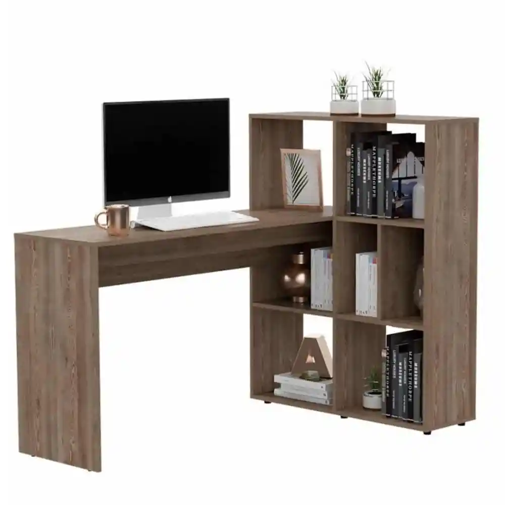 Escritorio Bennet Cuenta con una amplia superficie de trabajo. Tiene compartimentos para objetos de estudio o decorativos. color Miel. Medidas: Alto 75cm x Ancho 120cm, Ancho 45,5.
