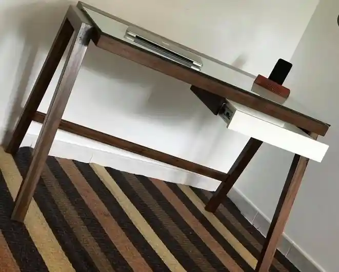 ESCRITORIO EN MADERA CON SUPERFICE EN VIDRIO. MEDIDA 120 X 60 X 74 DE ALTO