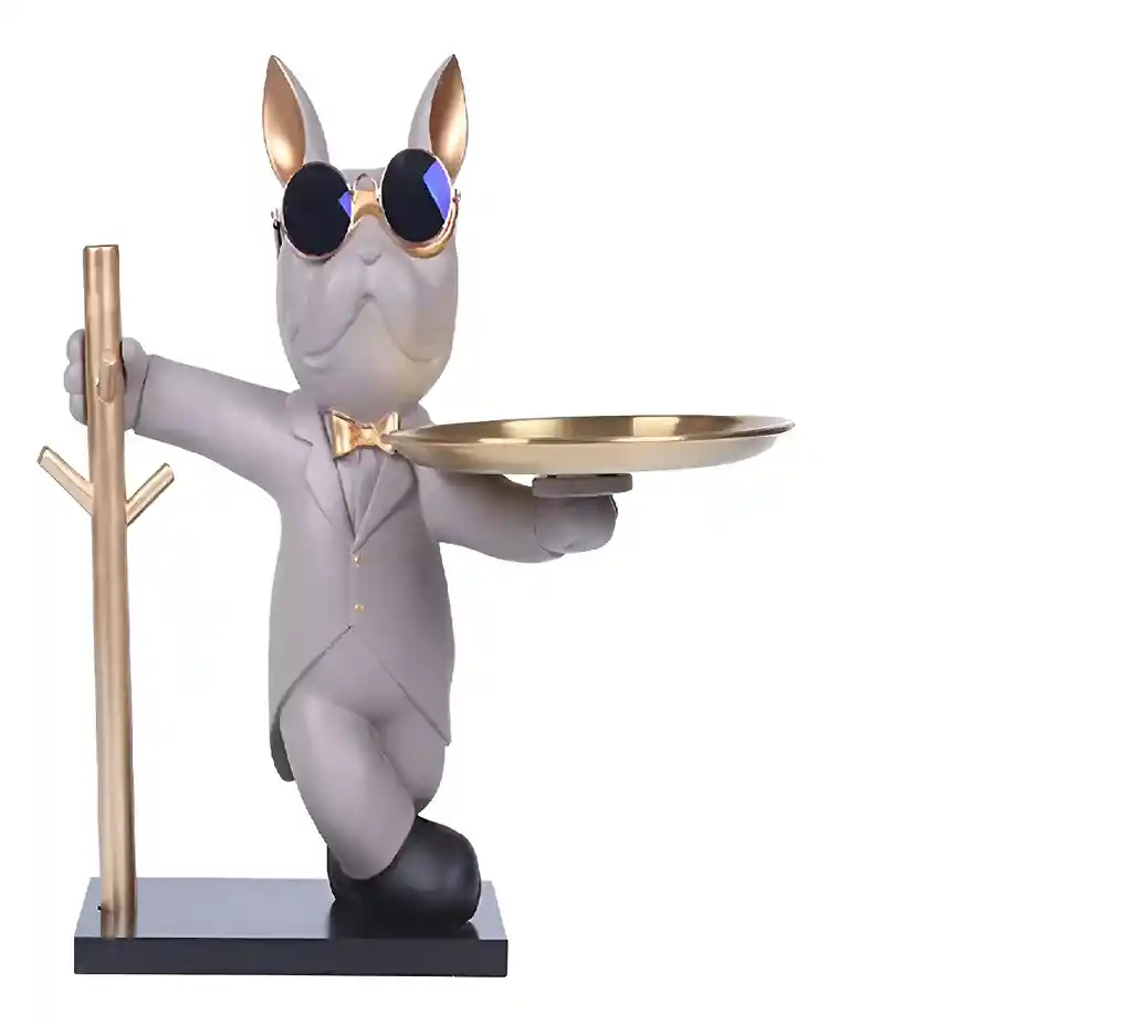 Escultura De Bulldog Francés, Figura De Perro Con Bandeja, Descripción: La estatua con gafas es un adorno elegante y funcional. Puede utilizarse como bandeja de almacenamiento para recoger llaves, dulces, chocolates y otros objetos. Uso generalizado: su diseño creativo la hace más atractiva y adecuada para el comedor, cocina, tocador, mesita de noche, encimera de oficina y otros espacios. Material: la bandeja de almacenamiento de la estatua está hecha de material de resina, duradero y estable. Garantía del vendedor: 3 meses
