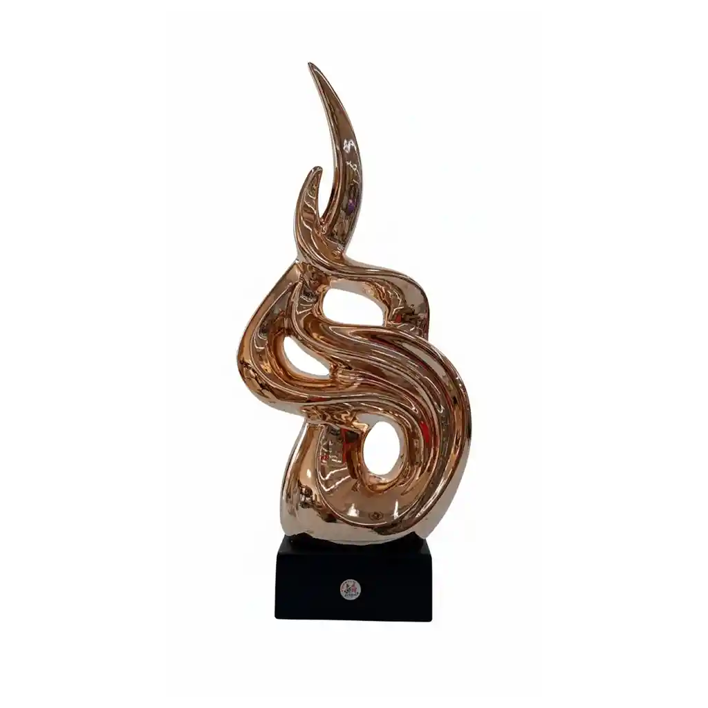 Presenta una silueta abstracta de líneas fluidas que aporta un aire de vanguardia y lujo a cualquier espacio del hogar. Superficie metalizada con un brillo excepcional que refleja la luz, creando un punto focal elegante en la decoración. Incluye una base cuadrada en color negro que proporciona firmeza y seguridad, evitando deslizamientos en superficies lisas. Fabricada con materiales resistentes que aseguran la conservación de su forma y brillo metalizado a través del tiempo. Su estilo contemporáneo se adapta perfectamente a ambientes minimalistas, industriales, clásicos o de estilo nórdico. Diseñada para transformar espacios simples en ambientes refinados, captando la atención de invitados y visitantes. Aporta un toque profesional y exitoso a consultorios o despachos, así como calidez y estatus a salas de estar. El recubrimiento dorado está tratado para resistir la pérdida de color, manteniendo su viveza por mucho más tiempo. Se entrega en un empaque protegido para asegurar que la pieza llegue en perfectas condiciones hasta la puerta de tu hogar. Se limpia fácilmente utilizando un paño suave y seco para retirar el polvo y mantener su resplandor original intacto. Dimensiones: Base 12cm largo x 8cm alto . Estos productos han sido ambientados, los accesorios adicionales no están incluidos y su color puede variar por la luz.