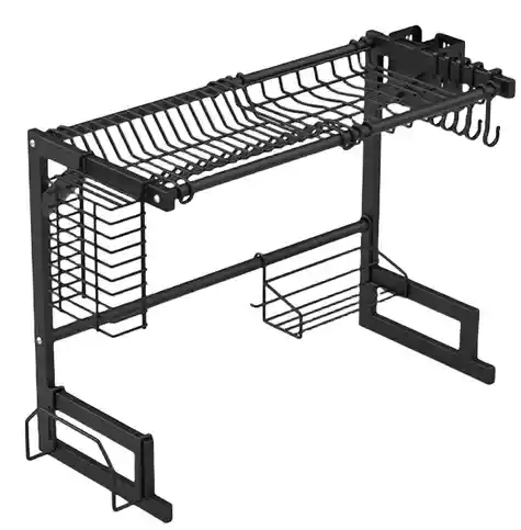 Este escurridor de loza es un estante organizador diseñado para mantener ordenados y secos tus platos, cubiertos y utensilios de cocina. Fabricado en material de acero inoxidable, este escurridor es extremadamente estable y duradero, capaz de soportar hasta 30 kg de peso. Su diseño extraíble y multifuncional incluye ganchos y un soporte para esponjas, lo que permite un uso eficiente del espacio en tu cocina.