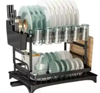 Este escurridor de platos de dos niveles es la solución perfecta para organizar y secar eficientemente tus utensilios de cocina. Diseñado para maximizar el espacio en tu cocina, cuenta con dos niveles que permiten separar platos, vasos y cubiertos, optimizando el almacenamiento y facilitando el secado sin ocupar demasiado espacio en la encimera. Incluye un soporte para vasos y ganchos laterales para colgar tazas o utensilios pequeños, lo que añade versatilidad a su diseño. Ideal para cocinas pequeñas o para quienes buscan mantener el orden en el hogar, este escurridor es fácil de ensamblar y está fabricado con materiales resistentes, asegurando una larga durabilidad. Es una opción práctica para mantener tu cocina organizada y limpia, mientras tus utensilios secan al aire libre de manera higiénica.