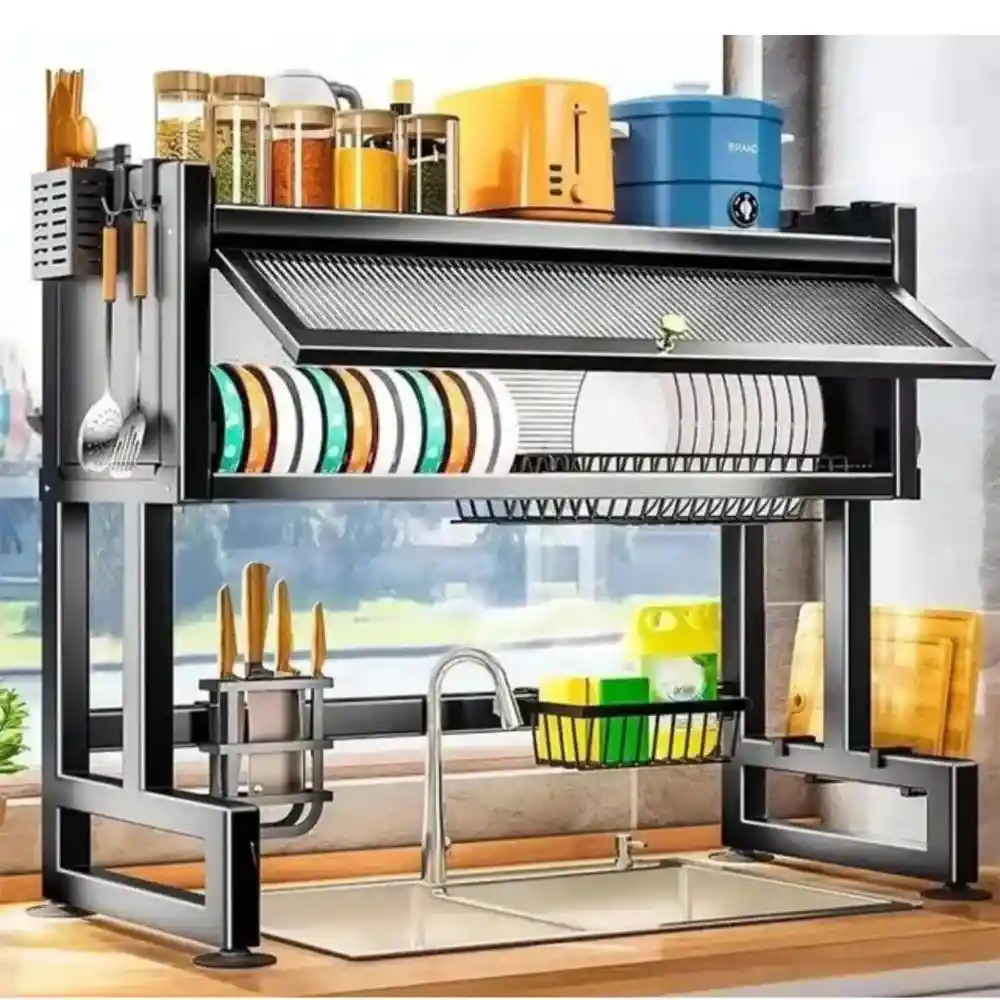 Este escurridor de platos con gabinete integrado transforma por completo el espacio sobre el fregadero, permitiendo almacenar vajilla, utensilios y suministros sin ocupar superficie en la encimera. Su estructura de acero esmaltado garantiza resistencia, estabilidad y larga vida útil, mientras que las ventosas inferiores evitan desplazamientos para mayor seguridad. El diseño vertical optimiza el espacio y dirige el agua directamente al fregadero, manteniendo la cocina limpia, ordenada y funcional. Sus accesorios desmontables permiten personalizar cada área según las necesidades, logrando una organización impecable en cualquier cocina. Características Fabricado en acero esmaltado de alta calidad Acabado horneado resistente a la corrosión Ventosas inferiores antideslizantes Gran capacidad de almacenamiento vertical Escurridor de cubiertos removible Compartimiento superior tipo gabinete Soportes ajustables y extraíbles Accesorios removibles para fácil mantenimiento Estabilidad mejorada con almohadillas antideslizantes Fácil instalación con piezas incluidas Medidas Caja: 65 cm × 32.5 cm × 15 cm Producto armado: Alto: 78.5 cm Ancho: 65 cm Fondo superior: 28.5 cm Fondo inferior: 29.5 cm Lo que incluye el paquete Estante para platos × 1 Soporte para cubiertos × 1 Porta cuchillos × 1 Ganchos para uso general × 6 Estante para tabla de cortar × 1 Bolsa de ventosas × 4 + 1 perilla Dos bolsas de tornillos (6 tornillos con tuerca y 9 tornillos + 2 llaves)