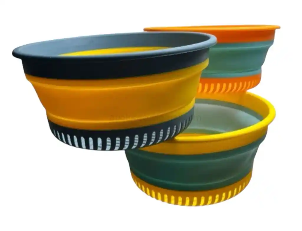 Colador Plastico De Goma Retractil Redondo Grande de 24 cm de diametro altura retraido de 2,5 cm. Diseño que ahorra espacio. Los coladores Son plegables, por lo que no ocupan mucho espacio necesario en los armarios de su cocina. Los coladores colapsados tienen menos de 2 pulgadas de alto.