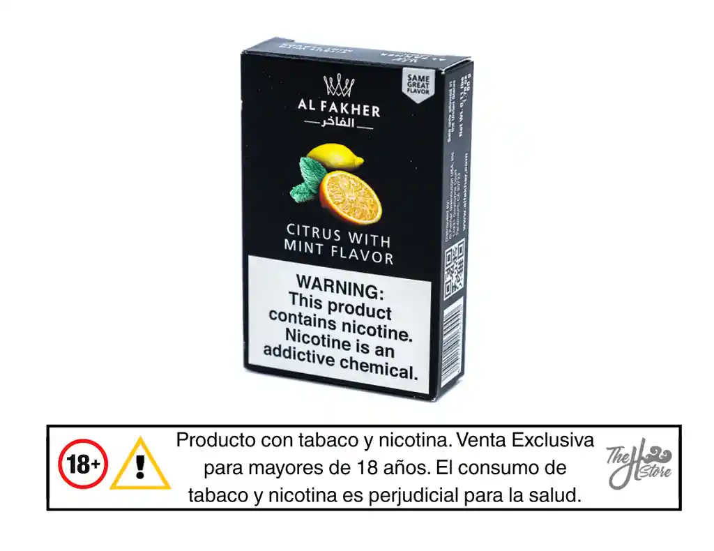 Sabores cítricos con menta. Producto elaborado a base de hojas de tabaco procesadas, glicerina vegetal y aromatizantes, con contenido de nicotina, diseñado para uso en Hookah, Shisha, Narguile, Arguile mediante calentamiento. Modo de uso: Colocar una cantidad adecuada de producto en la cazoleta (bowl) de la hookah. Cubrir con papel aluminio o utilizar un gestor de calor. Aplicar calor mediante carbón, de acuerdo con la preparación habitual del usuario. Condiciones de almacenamiento: Conservar en un lugar fresco y seco, alejado de la luz directa y de fuentes de calor. Mantener el envase bien cerrado después de su uso. Advertencias: Producto con tabaco y nicotina. Venta exclusiva para mayores de 18 años. El consumo de tabaco y nicotina es perjudicial para la salud. Mantener fuera del alcance de niños y mascotas. La venta y consumo están regulados por la normativa vigente.