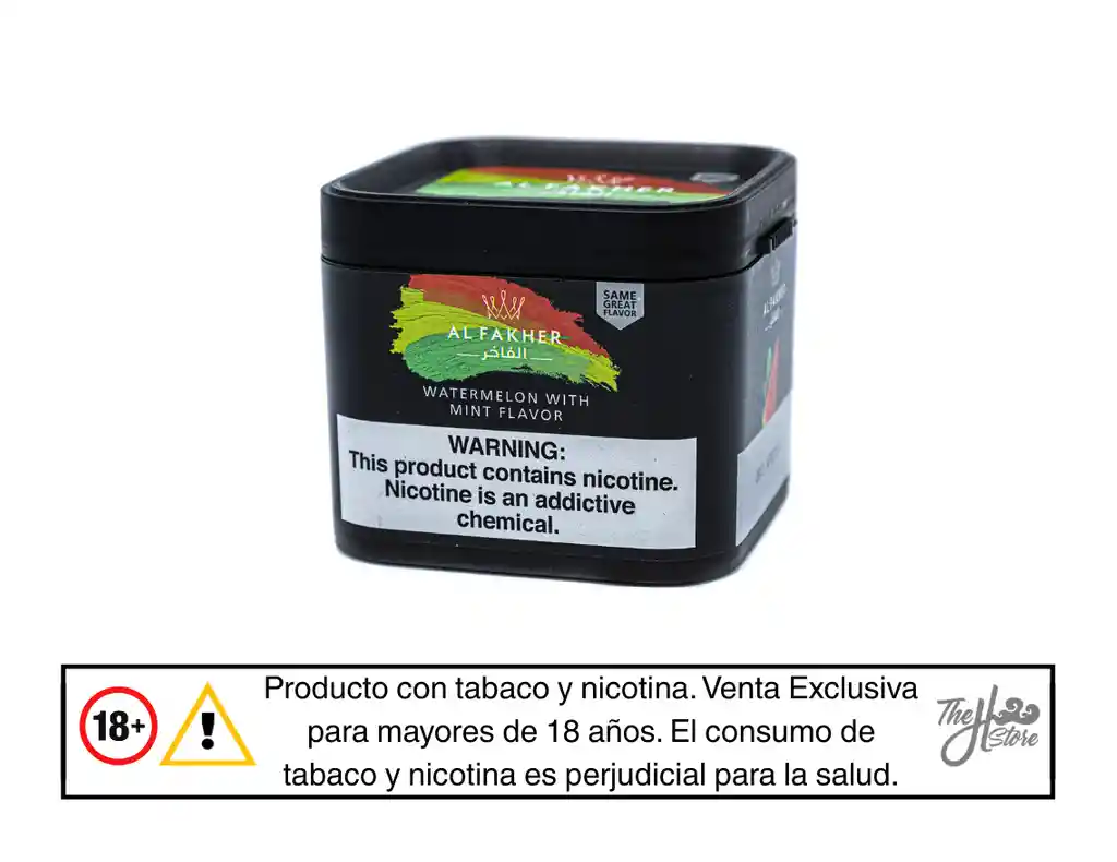 Sabor a sandia y menta. Producto elaborado a base de hojas de tabaco procesadas, glicerina vegetal y aromatizantes, con contenido de nicotina, diseñado para uso en Hookah, Shisha, Narguile, Arguile mediante calentamiento. Modo de uso: Colocar una cantidad adecuada de producto en la cazoleta (bowl) de la hookah. Cubrir con papel aluminio o utilizar un gestor de calor. Aplicar calor mediante carbón, de acuerdo con la preparación habitual del usuario. Condiciones de almacenamiento: Conservar en un lugar fresco y seco, alejado de la luz directa y de fuentes de calor. Mantener el envase bien cerrado después de su uso. Advertencias: Producto con tabaco y nicotina. Venta exclusiva para mayores de 18 años. El consumo de tabaco y nicotina es perjudicial para la salud. Mantener fuera del alcance de niños y mascotas. La venta y consumo están regulados por la normativa vigente.