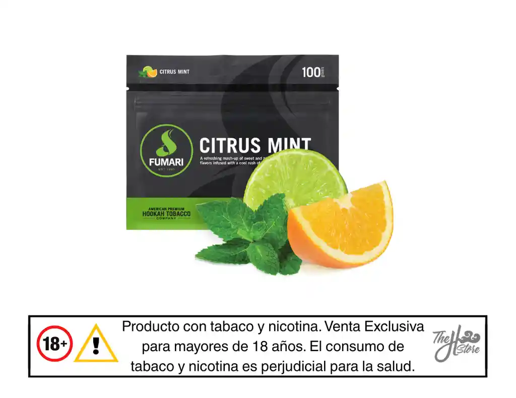 Sabores cítricos con menta. Producto elaborado a base de hojas de tabaco procesadas, glicerina vegetal y aromatizantes, con contenido de nicotina, diseñado para uso en Hookah, Shisha, Narguile, Arguile mediante calentamiento. Modo de uso: Colocar una cantidad adecuada de producto en la cazoleta (bowl) de la hookah. Cubrir con papel aluminio o utilizar un gestor de calor. Aplicar calor mediante carbón, de acuerdo con la preparación habitual del usuario. Condiciones de almacenamiento: Conservar en un lugar fresco y seco, alejado de la luz directa y de fuentes de calor. Mantener el envase bien cerrado después de su uso. Advertencias: Producto con tabaco y nicotina. Venta exclusiva para mayores de 18 años. El consumo de tabaco y nicotina es perjudicial para la salud. Mantener fuera del alcance de niños y mascotas. La venta y consumo están regulados por la normativa vigente.