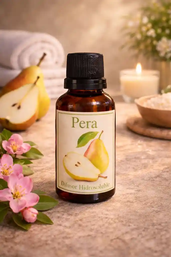 Crea un ambiente suave y armonioso con esta esencia hidrosoluble aroma Pera, inspirada en experiencias de spa y bienestar. Su fragancia fresca, delicada y ligeramente frutal aporta una sensación de limpieza y relajación, ideal para momentos de descanso y equilibrio. Diseñada para usarse en difusores y humidificadores, se disuelve fácilmente en agua y libera un aroma sutil que transforma cualquier espacio en una atmósfera tranquila y acogedora. Características: •Aroma: Pera fresca y suave Contenido: 30 ml Uso: Difusores y humidificadores •Estilo: Spa · Relajante · Premium •Fórmula hidrosoluble Incluye: •1 esencia hidrosoluble aroma Pera 30 ml (Los elementos decorativos de la imagen son solo ambientación)