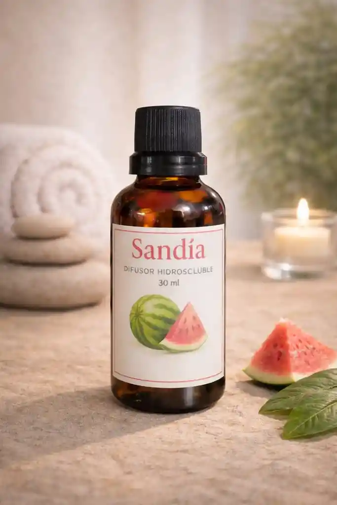 Disfruta una sensación de frescura suave y relajante con esta esencia hidrosoluble aroma Sandía, diseñada para crear ambientes tranquilos y armoniosos. Su fragancia ligera y natural aporta un toque refrescante sin ser invasivo, ideal para espacios que buscan equilibrio y bienestar. Perfecta para usar en difusores y humidificadores, se disuelve fácilmente en agua y libera un aroma delicado que transforma el entorno en una experiencia tipo spa minimal. Características: •Aroma: Sandía fresca y suave •Contenido: 30 ml Uso: Difusores y humidificadores •Estilo: Spa · Minimal · Relajante •Fórmula hidrosoluble Incluye: •1 esencia hidrosoluble aroma Sandía 30 ml (Los elementos decorativos de la imagen son solo ambientación)