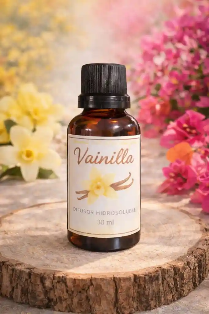Envuelve tus espacios con la calidez y suavidad de esta esencia hidrosoluble aroma Vainilla, inspirada en la naturaleza y los tonos florales amarillos y fucsias. Su fragancia dulce y delicada crea un ambiente acogedor, armonioso y relajante, ideal para momentos de descanso y bienestar. Perfecta para usar en difusores y humidificadores, se disuelve fácilmente en agua y libera un aroma equilibrado que transforma cualquier espacio en una experiencia sensorial tipo spa natural. Características: •Aroma: Vainilla suave y reconfortante •Contenido: 30 ml •Uso: Difusores y humidificadores •Estilo: Natural · Floral · Premium •Fórmula hidrosoluble Incluye: •1 esencia hidrosoluble aroma Vainilla 30 ml (Los elementos decorativos de la imagen son solo ambientación)