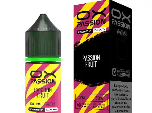 Passion Fruit de Ox Passion (de la marca OXVA) es un sabor dulce y ácido de maracuyá con un toque frío. Perfil de sabor: Maracuyá con un toque fresco. Nicotina: 55mg, 30ML