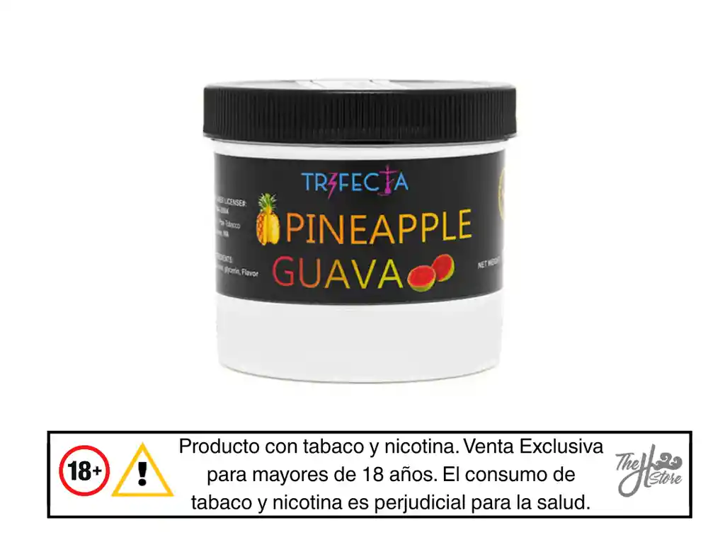 Sabor a piña y guayaba. Producto elaborado a base de hojas de tabaco procesadas, glicerina vegetal y aromatizantes, con contenido de nicotina, diseñado para uso en Hookah, Shisha, Narguile, Arguile mediante calentamiento. Modo de uso: Colocar una cantidad adecuada de producto en la cazoleta (bowl) de la hookah. Cubrir con papel aluminio o utilizar un gestor de calor. Aplicar calor mediante carbón, de acuerdo con la preparación habitual del usuario. Condiciones de almacenamiento: Conservar en un lugar fresco y seco, alejado de la luz directa y de fuentes de calor. Mantener el envase bien cerrado después de su uso. Advertencias: Producto con tabaco y nicotina. Venta exclusiva para mayores de 18 años. El consumo de tabaco y nicotina es perjudicial para la salud. Mantener fuera del alcance de niños y mascotas. La venta y consumo están regulados por la normativa vigente.
