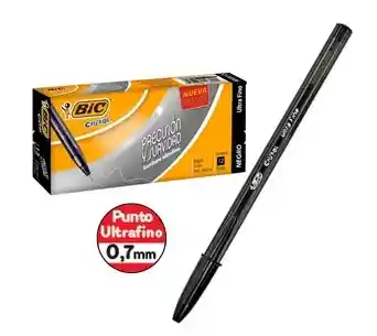 Esfero Bic Negro Cristal Punta Fina 0.7mm Caja x 12+1 Unidades