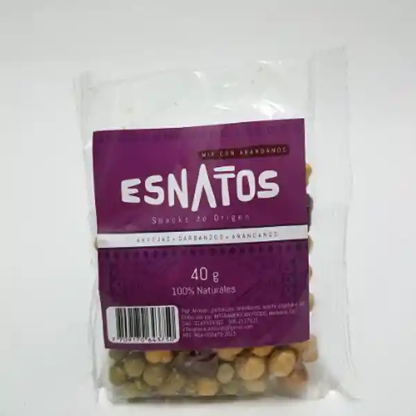 Snack de origen por 40g marca Esnatos Sabores: Arvejas garbanzos y arandanos Arvejas Garbanzos