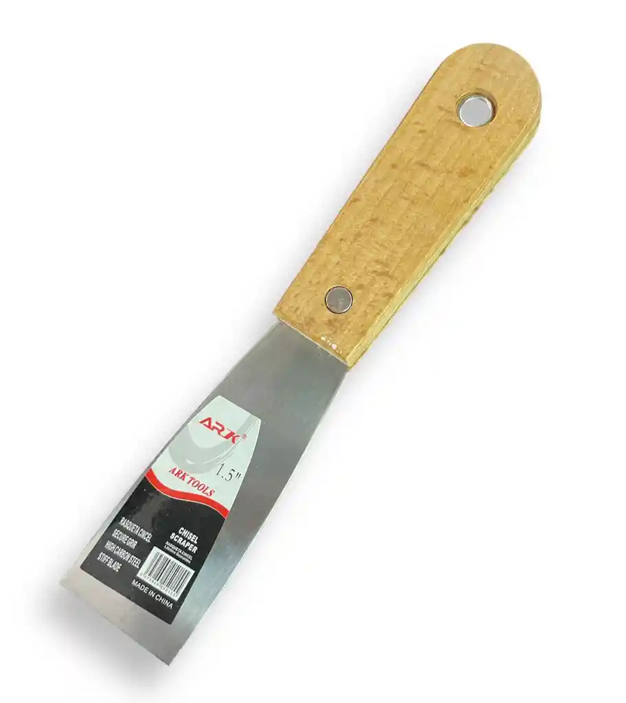 Herramienta que consiste en una lámina plana de metal con agarradera se utiliza para limpiar, alisar, rascar pintura, levantar incrustaciones