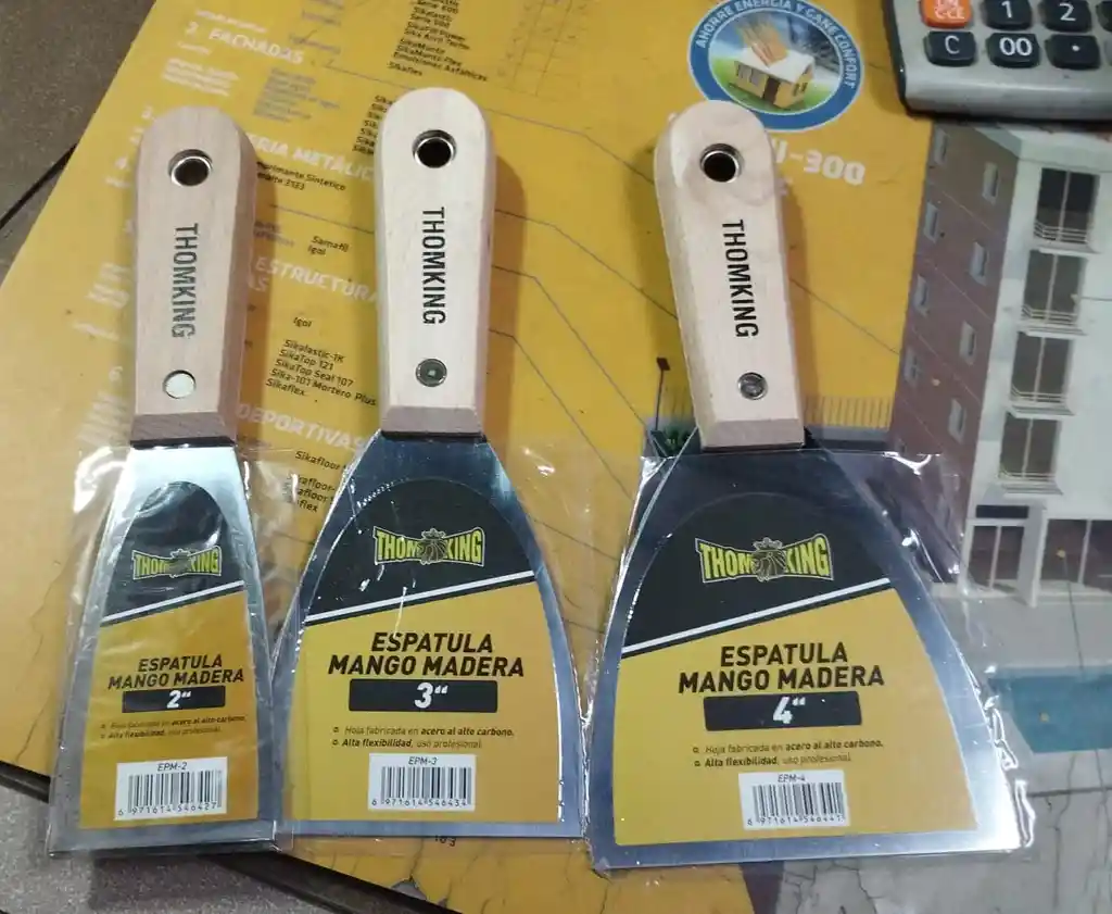 Espátula con hoja de 3 pulgadas y mango de madera, adecuada para extender masillas, estuco y compuestos en superficies medianas. Su mango de madera ofrece un agarre ergonómico y buen control durante el uso. Perfecta para trabajos de construcción, remodelación y acabados.
