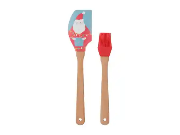 Set de Espátula y Brocha de Silicona y Madera Para la Cocina Con Lindo Diseño Navideño. Producto Libre de Bpa