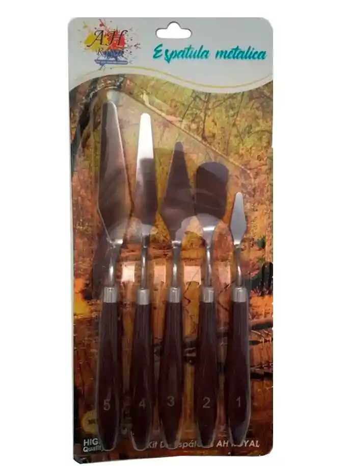 "Especificaciones: Color: marrón rojizo Material: acero inoxidable (hoja) y madera (mango) Tamaño del mango de madera: aprox. 9,8*1,6 cm/3,86*0,62 pulgadas (L * W) Longitud de la hoja: aprox. 3,6-9 cm/1,4-3,5 pulgadas Característica: 1. Un juego de 5 uds. Gama de cuchillos, ideal para trabajar con pinturas al óleo sobre lienzo o paleta de pintura de propagación rápida y uniforme con cuchilla de acero extremadamente flexible y Sin borde afilado. 2 Este práctico conjunto contiene 5 calidad alta gama de cuchillos para gran versatilidad 3. 5 Placas tienen 5 tamaños diferentes, el tamaño más largo es de 8,86 pulgadas, el pequeño es de 6,89 pulgadas. 4. Los cuchillos pequeños son buenos para trabajos más pequeños y cuchillos grandes para trabajos a gran escala. Ventajas: 1. Ideal para mezclar pintura, permite aplicar pintura de una manera texturizada y se puede usar en su lado para líneas finas. 2. Proporcionan un rendimiento de calidad y un valor excepcional para garantizar una experiencia de pintura agradable para todos los niveles de capacidad artística. 3. Ideal para artistas en todos los niveles de habilidad, la gama de cuchillos también se puede utilizar para mezclar óleo y pinturas acrílicas, medios y pigmentos en su paleta. Paquete: 5 unidades"