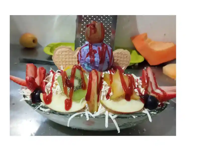 Deliciosa ensalada de frutas con 1 sabor de helado