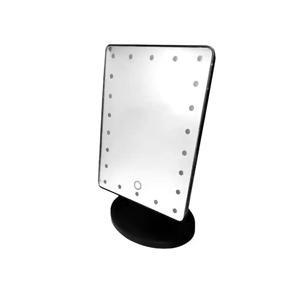 Este práctico espejo LED de mesa es ideal para maquillaje y cuidado personal, ya que cuenta con un diseño moderno, base estable y una superficie amplia que permite una visión clara y precisa. Incorpora luces LED alrededor del marco que ofrecen una iluminación uniforme, perfecta para resaltar detalles en cualquier ambiente. Su estructura ajustable permite girarlo en diferentes ángulos para mayor comodidad, mientras que su tamaño compacto facilita ubicarlo en el tocador, baño o espacio de belleza. Elegante y funcional, es el complemento perfecto para tu rutina diaria. Ficha Técnica: Dimensiones : 21 cm x 18 cm x 17 cm Material: Plastico ABS Funcionamiento: 4 Baterias AA ( Incluidas ) ** _Para defectos de fábrica o retractos: \_Por favor revise el producto apenas lo reciba y antes de usarlo. No aplican ley de retracto o defectos de fábrica luego de usar el producto. Se manejan máximo 5 días para reportar defectos de fábrica (por ejemplo, producto funciona mal, piezas faltantes, rotas, etc). Para hacer efectiva la devolución el producto debe devolverse con el empaque original, el cual debe estar en buen estado, incluir todos los documentos y las partes completas y sin daños.