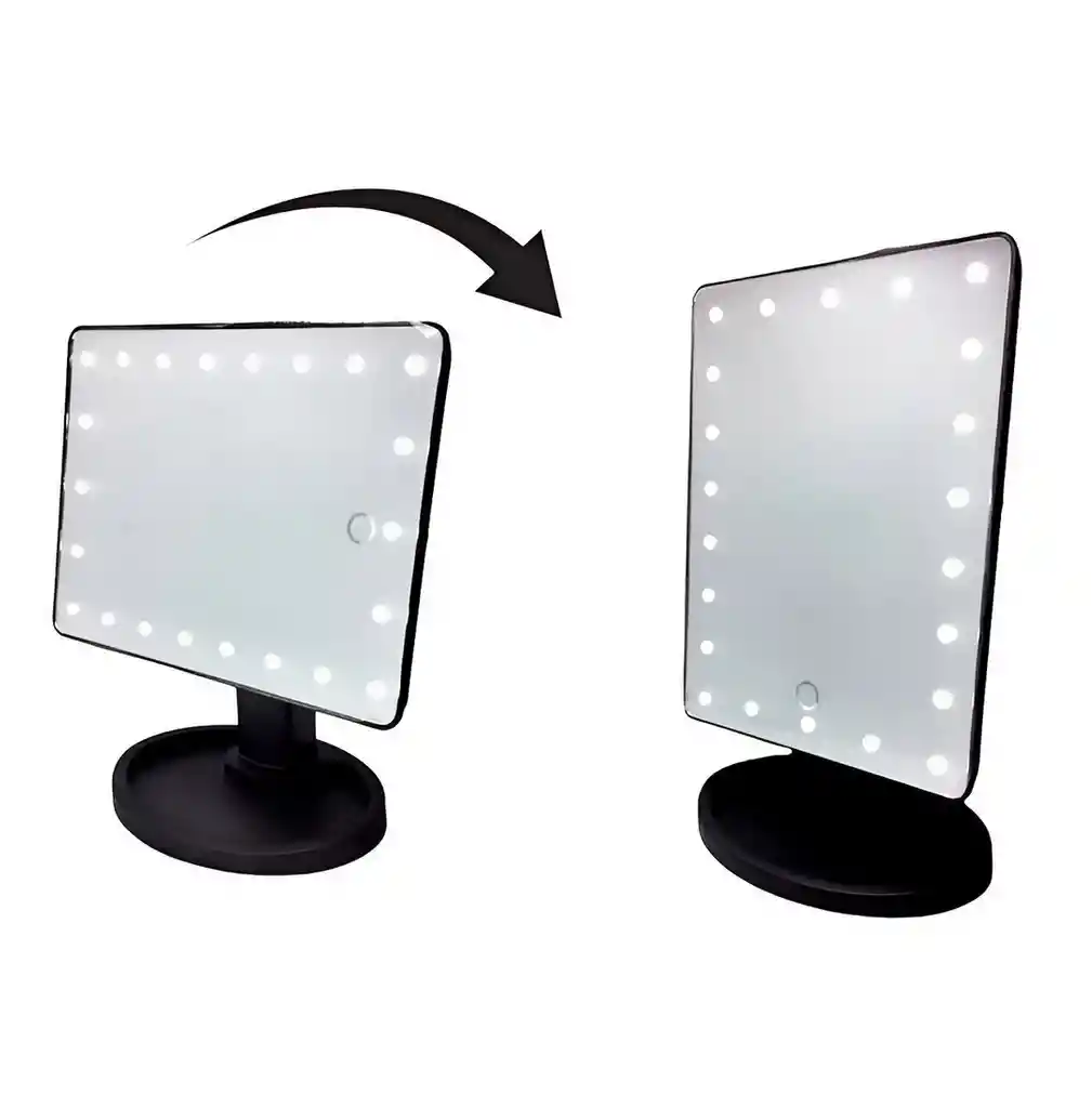 Este práctico espejo LED de mesa es ideal para maquillaje y cuidado personal, ya que cuenta con un diseño moderno, base estable y una superficie amplia que permite una visión clara y precisa. Incorpora luces LED alrededor del marco que ofrecen una iluminación uniforme, perfecta para resaltar detalles en cualquier ambiente. Su estructura ajustable permite girarlo en diferentes ángulos para mayor comodidad, mientras que su tamaño compacto facilita ubicarlo en el tocador, baño o espacio de belleza. Elegante y funcional, es el complemento perfecto para tu rutina diaria. Ficha Técnica: Dimensiones : 21 cm x 18 cm x 17 cm Material: Plastico ABS Funcionamiento: 4 Baterias AA ( Incluidas ) ** _Para defectos de fábrica o retractos: \_Por favor revise el producto apenas lo reciba y antes de usarlo. No aplican ley de retracto o defectos de fábrica luego de usar el producto. Se manejan máximo 5 días para reportar defectos de fábrica (por ejemplo, producto funciona mal, piezas faltantes, rotas, etc). Para hacer efectiva la devolución el producto debe devolverse con el empaque original, el cual debe estar en buen estado, incluir todos los documentos y las partes completas y sin daños.