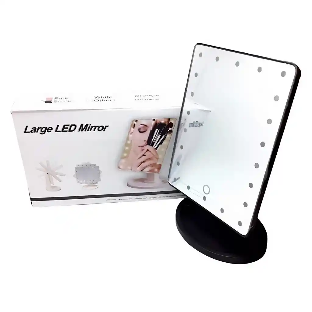 Este práctico espejo LED de mesa es ideal para maquillaje y cuidado personal, ya que cuenta con un diseño moderno, base estable y una superficie amplia que permite una visión clara y precisa. Incorpora luces LED alrededor del marco que ofrecen una iluminación uniforme, perfecta para resaltar detalles en cualquier ambiente. Su estructura ajustable permite girarlo en diferentes ángulos para mayor comodidad, mientras que su tamaño compacto facilita ubicarlo en el tocador, baño o espacio de belleza. Elegante y funcional, es el complemento perfecto para tu rutina diaria. Ficha Técnica: Dimensiones : 21 cm x 18 cm x 17 cm Material: Plastico ABS Funcionamiento: 4 Baterias AA ( Incluidas ) ** _Para defectos de fábrica o retractos: \_Por favor revise el producto apenas lo reciba y antes de usarlo. No aplican ley de retracto o defectos de fábrica luego de usar el producto. Se manejan máximo 5 días para reportar defectos de fábrica (por ejemplo, producto funciona mal, piezas faltantes, rotas, etc). Para hacer efectiva la devolución el producto debe devolverse con el empaque original, el cual debe estar en buen estado, incluir todos los documentos y las partes completas y sin daños.