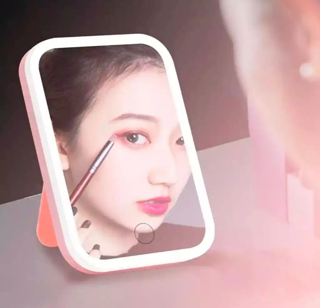Espejo de maquillaje portátil recargable. Posee en sus bordes luz led y tiene una batería de litio integrada de 1200mAh, que puede funcionar continuamente durante 150 minutos después de cargarse completamente. Viene con un cable de carga USB, sin necesidad de comprar una batería, más respetuoso con el medio ambiente y conveniente. La luz LED está controlada por un interruptor de sensor táctil, puede encender y apagar. Cómodo para llevarlo de viaje. Se puede colocar en el tocador o en la bolsa de maquillaje. Es un espejo de maquillaje de viaje perfecto y se puede llevar contigo con facilidad gracias a su diseño portátil. DATOS TECNICOS Material: ABS. Medidas: 17 cm x 13 cm. Tiempo de uso: 2.5 - 3 hs. Tiempo de carga: 3 hs. Batería: 1200mAh (recargable). Entrada: DC 5V/2A. Temperatura de luz: 3000/6500k. Potencia: 1,48 w.