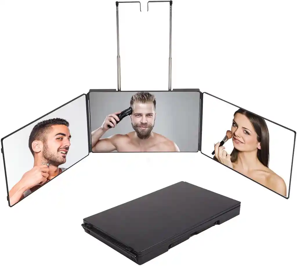 Espejo de 3 Vías para Cortar el Cabello, Espejo 360°, Espejo Barbería Portátil Trifold,Espejo Colgante Ajustable Altura para Cortar el Cabello, Afeitado, Maquillaje, Tinte para el cabello,Regalos para Hombres Mujeres.