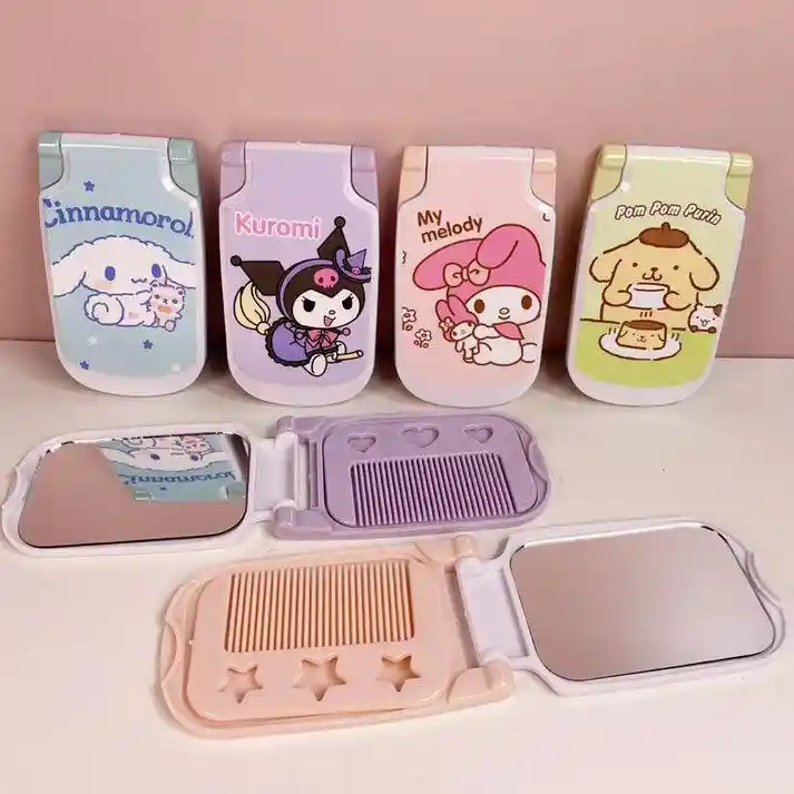 Incluye: 1x Espejo de mano Sanrio. 1x Mini peine. *** SE ENVÍAN DISEÑOS O COLORES DE ACUERDO A LA DISPONIBILIDAD EN STOCK AL MOMENTO DE REALIZAR LA COMPRA, SI NECESITAS UN DISEÑO EN ESPECIAL DÉJANOS SABER ESCRIBIENDO AL CHAT PARA VALIDAR DISPONIBILIDAD** Importante: Debido a la diferencia de pantallas y efecto de la luz, el color real del articulo puede ser ligeramente diferente al color mostrado en las imágenes.