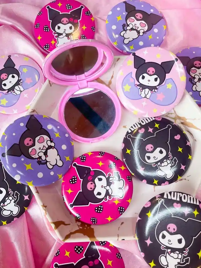 Hermoso espejo doble circular, tamaño pequeño para el bolso.