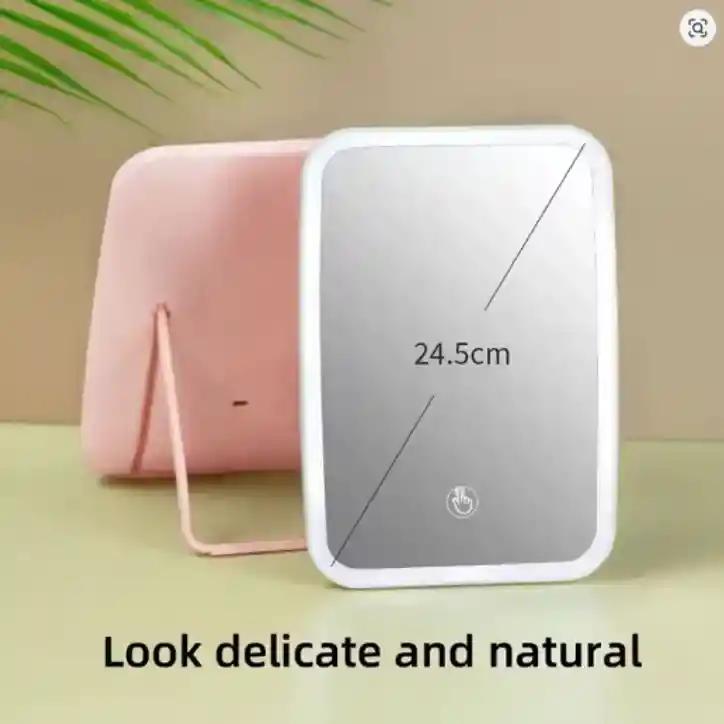 CARACTERÍSTICAS: - Dimensiones aproximadas 24 x 16.5 x 2.5 cm - Botón frontal táctil de Encendido/Apagado/Variación de intensidad - 33 Luces LED en el contorno del espejo, el tono se puede ajustar entre blanco, amarillo y cálido ESPEJO LED RECARGABLE BLANCO / ROSADO CARACTERÍSTICAS: - Dimensiones aproximadas 24 x 16.5 x 2.5 cm - Botón frontal táctil de Encendido/Apagado/Variación de intensidad - 33 Luces LED en el contorno del espejo, el tono se puede ajustar entre blanco, amarillo y cálido TE ENTREGAMOS: 1-Espejo con luz LED 1-Cable USB