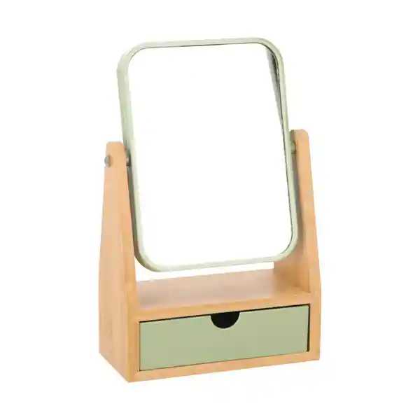 Espejo de Mesa Con Cajonera Ideal Para Guardar Tus Joyas y Accesorios de Belleza el Espejo Tiene un Aumento de 1X. Medidas: Alto: 26 cm Ancho: 16,2 cm Profundidad: 7,8 cm Composición: Madera de Bambú Vidrio Poliestireno. ''En Casaideas Encontrarás Artículos de Diseño Para Vivir Día a Día en un Espacio Que te Haga Feliz.''