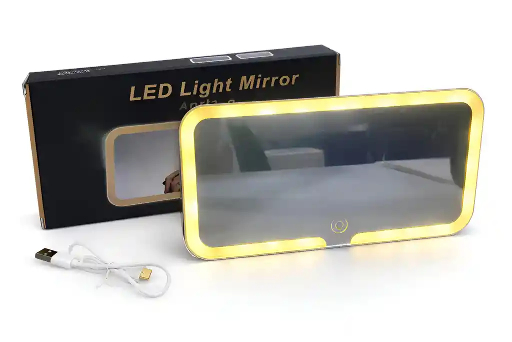 Espejo para maquillaje para carro con iluminación LED, ideal para maquillarte o hacer retoques rápidos dentro del vehículo. Su diseño compacto permite colocarlo fácilmente en la visera del carro, proporcionando una iluminación clara y uniforme para mejorar la visibilidad. Funciona con cable USB y es perfecto para viajes, uso diario o para mantener tu apariencia impecable en cualquier momento.