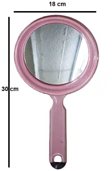 Espejo rosado de pasta transparente, con doble espejo atrás y adelante, de aumento y normal.