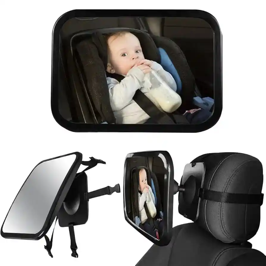 - Mantén a tu bebé a la vista durante el viaje ya que el espejo retrovisor te ayuda a visualizar a tu bebé sin tener que girar mientras conduces. - El espejo retrovisor bebé para asiento trasero de coche ofrece dos opciones de correas en el reposacabeza/ventosa en el parabrisas tanto para bebés que miran hacia atrás como hacia delante. Lo que permite cambiar la posición del espejo en lugar de comprar otro durante el crecimiento del bebé. - Diseño inastillable y construcción constante: este espejo de coche para bebé está hecho de plástico acrílico inastillable de alta calidad en lugar de vidrio. - Sección de conexión estable de taza/correas de hebilla para asegurar que el espejo permanezca firmemente en su lugar incluso a través de carreteras con baches. CARACTERISTICAS: Medidas: 25x18cm Ajuste: mediante correas