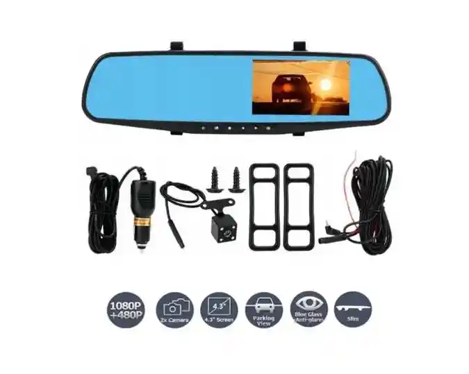Retrovisor Doble Camara Este producto es ideal para aquellos que desean tener una mayor seguridad y protección en su camino, ya sea para evitar accidentes o para tener pruebas en caso de algún incidente. La cámara frontal de alta definición graba con claridad los detalles de la carretera y la cámara de retroceso ayuda en el estacionamiento con una visión clara de la parte trasera del vehículo. Además, la opción de sensor de movimiento y control de parqueo brinda una mayor seguridad a su vehículo estacionado. Con una pantalla de 4.3″ y la capacidad de soportar tarjetas de memoria de hasta 32GB, tendrás todo lo necesario para tener una experiencia de grabación fluida y eficiente. ¡No esperes más y consigue tu espejo retrovisor con grabadora digital de vídeo hoy mismo! el espejo retrovisor con grabadora digital de vídeo es muy fácil de instalar y utilizar. Se ajusta perfectamente al espejo original de tu vehículo y su diseño elegante y compacto lo hace ideal para cualquier tipo de automóvil. La grabación es automática y se activa en cuanto el motor se enciende, lo que significa que no tienes que preocuparte por activarla manualmente. La pantalla incorporada te permite ver y revisar fácilmente tus grabaciones, lo que es útil si necesitas comprobar algo después de un viaje o si deseas verificar si algo inusual sucedió mientras estabas en la carretera. En general, el espejo retrovisor con grabadora digital de vídeo es una inversión valiosa para aquellos que buscan una mayor seguridad en la carretera y una forma de protegerse en caso de cualquier incidente. Con su facilidad de uso y su diseño elegante, es un accesorio ideal para cualquier automóvil. No esperes más y consigue el tuyo hoy mismo para disfrutar de una mayor seguridad y protección en la carretera. Retrovisor Doble Camara CARACTERISTICAS: •Pantalla de 4.3″. •Cámara Delantera Full HD. •Cámara trasera 720p. •Visión Nocturna. •Soporta memorias hasta 32Gb. •Control de parqueo. •Control de movimiento. •G sensor. •Espejo retrovisor con cámara •Cámara de retroceso con soporte. •Cable de alimentación •Slot para tarjeta de memoria •El largo del cable (camara trasera) tiene 6 mts aprox •Ángulo de la lente: 120degree •Voltaje de la pila: 9dcv — 15dcv •Voltaje nominal: DC 12 V •oste de consumo: max 1 W •Sensor de imagen: 1/3 CMOS •Total de píxeles: 720 x 504 pixeles •Resolución: 600 TVL (mejorada) •Ángulo de la lente: 120 grados •Mini iluminación: 0.1lux •Salida de vídeo: CVBS 1.0 Vpp/75 ohm CONTENIDO: •Espejo Retrovisor (La Cámara Delantera es parte del Espejo) •Cámara de Reversa. •Cable de Corriente. •Cable para Cámara Trasera •2 soportes de Caucho Para instalar sobre Espejo Retrovisor Cámara frontal incorporada al espejo que le permite realizar la grabación del trayecto que recorre. Dispone de un slot para tarjeta de memoria que soporta hasta 32GB. Se alimenta con 12v del encendedor del vehículo. La pantalla incorporada es de 4.3” Se adapta al espejo original de su vehículo. Además el equipo cuenta con una cámara de retroceso para facilitar su estacionamiento. ¿PARA QUE SIRVE EL PRODUCTO? Con este increíble espejo podrás grabar todo tu camino gracias a su cámara Full Hd que te permite tener un ángulo de visión de 170°, además cuenta con una cámara de reversa de fácil instalación para que evites rayar tu parachoques al parquear, también cuenta con sensor de movimiento para que se Active cuando alguien se acerque a tu auto cuando está parqueado.