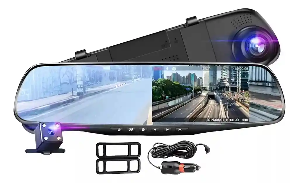 Espejo Retrovisor Doble Cámara con Pantalla de 4.5 Full HD para Carro – Seguridad y Comodidad en tu Conducción Características Principales: El Espejo Retrovisor Doble Cámara con Pantalla de 4.5 Full HD de la marca SSSCAR es una solución avanzada para mejorar la seguridad y comodidad al conducir. Sus características destacadas incluyen: *Pantalla Integrada de 4.5 Pulgadas: Incorporada en el espejo retrovisor, ofrece una visualización clara y detallada de las imágenes capturadas por las cámaras frontal y trasera. *Doble Cámara Full HD: Equipada con cámaras frontal y trasera que graban en alta definición (1080p), proporcionando registros nítidos de la carretera y del entorno del vehículo.