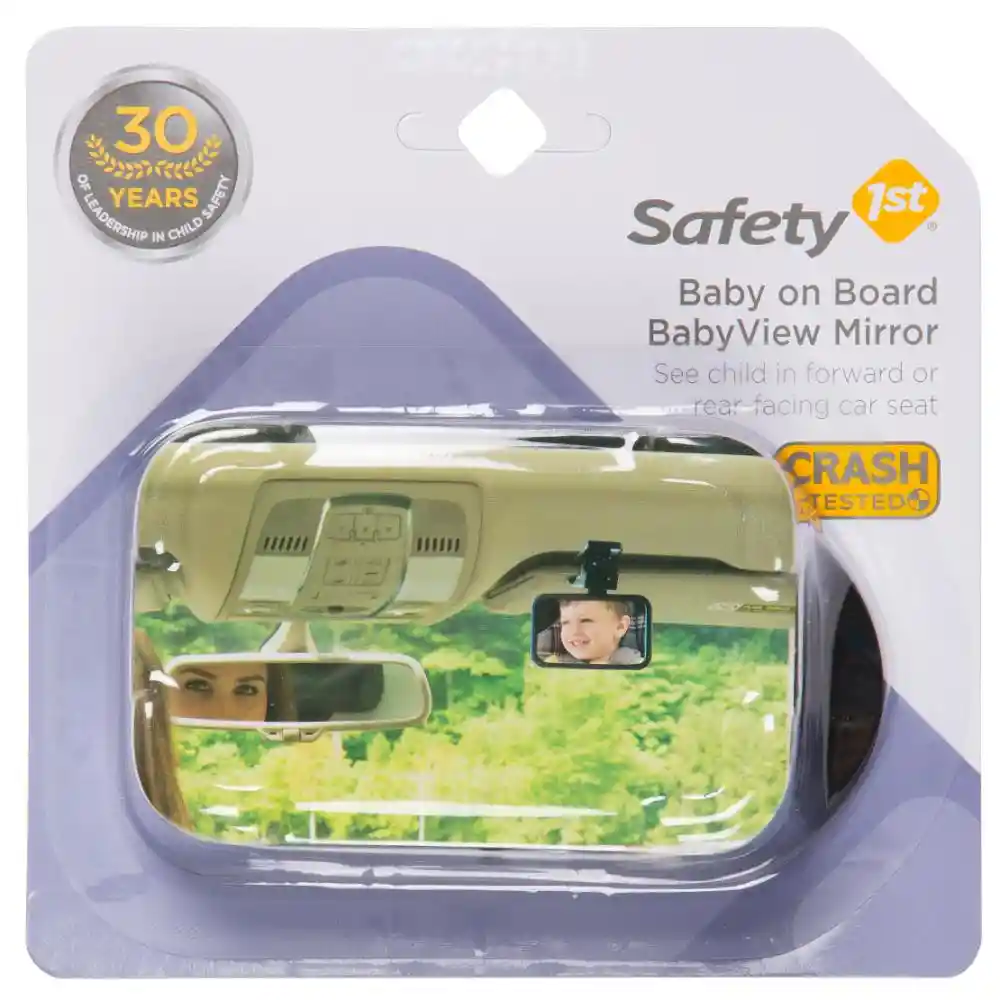 -Safety 1st Baby on Board - Espejo retrovisor para bebé -Se fija a la ventana trasera para niños mirando hacia atrás -Clips a la visera para niños orientados hacia delante -Se ajusta para una visión perfecta